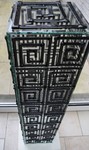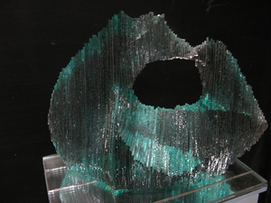 2012de opstapeling van de reepjes glas symboliseren de hoeveelheid meningen die samen de toren van babeld vormen. Deze staat weer voor de storing in communicatie.